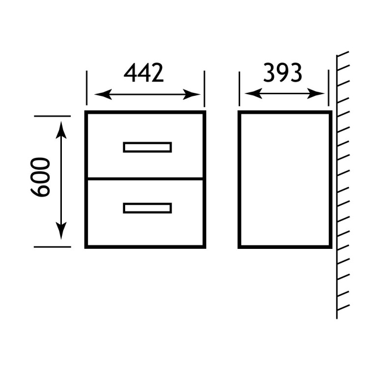 Unit only, basin sold separately. - 2 Drawer