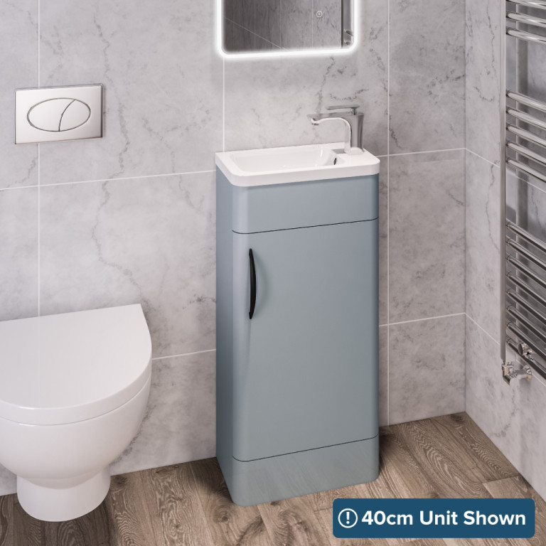 The Cavone bathroom furniture features a luxurious curved basin that flows perfectly with the curved lines of the doors of the vanity unit. Features soft close doors, interchangeable chrome or black handles, built in overflow. Unit only, basin sold separately. - 1 Door