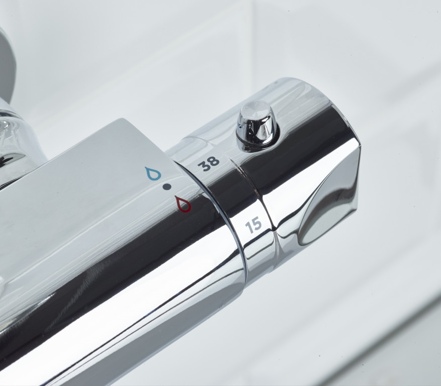 - Thermostatic cartridge with preset temperature stop at 38°C, can be over-ridden to a maximum of 46°C