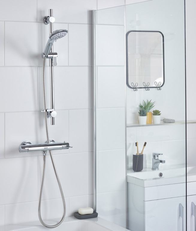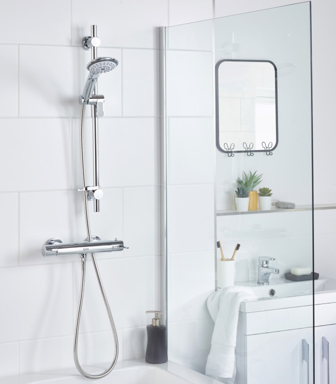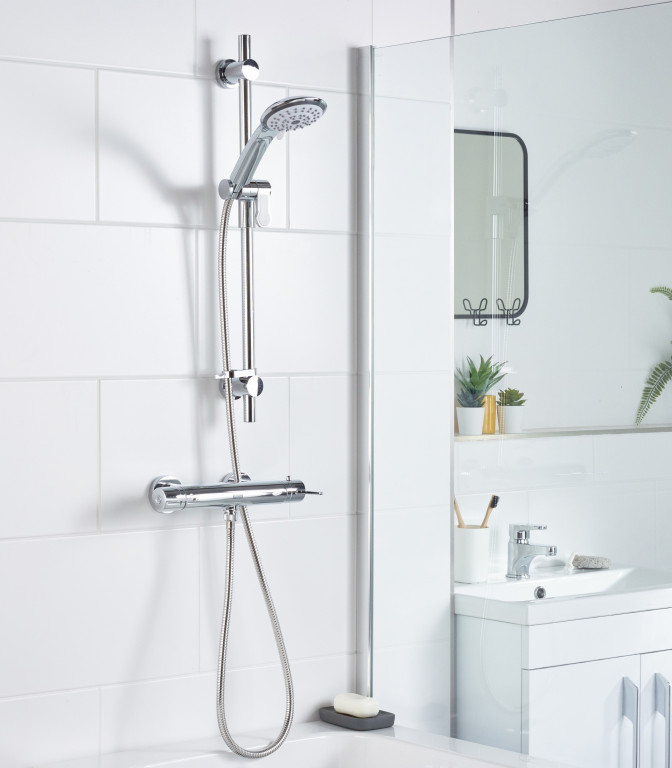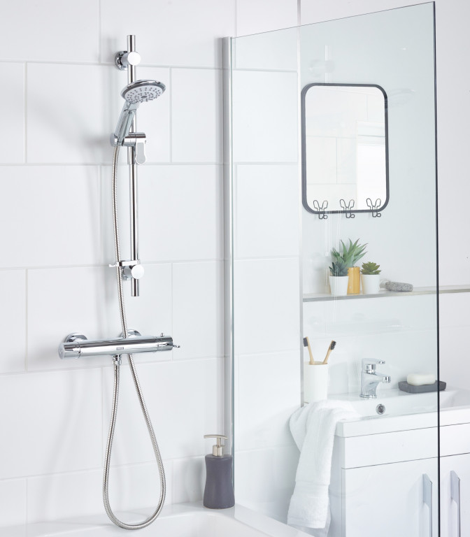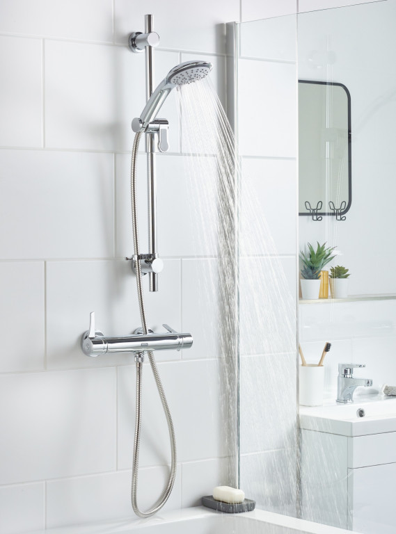 - Includes riser rail with adjustable fixing bracket, rub-clean anti-limescale handset and hose