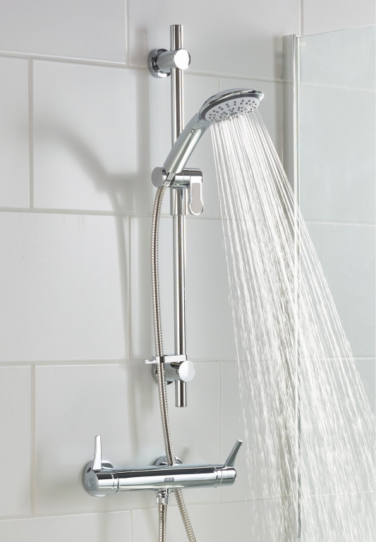 - Thermostatic cartridge with preset temperature stop at 38°C, can be over-ridden to a maximum of 46°C