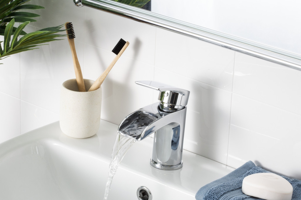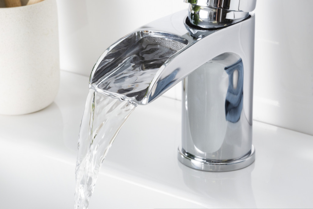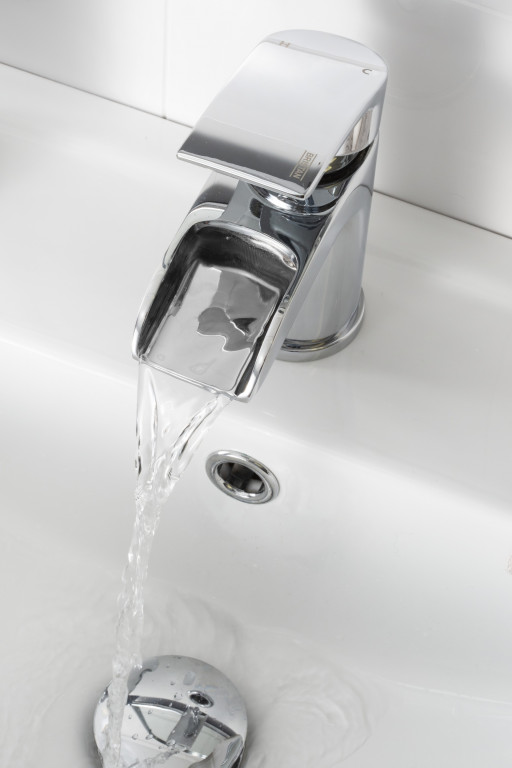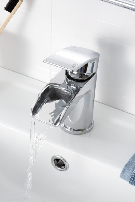 The soft lines and a rounded shape make the Glide range a versatile statement choice, whilst the open waterfall spout adds drama to the experience.