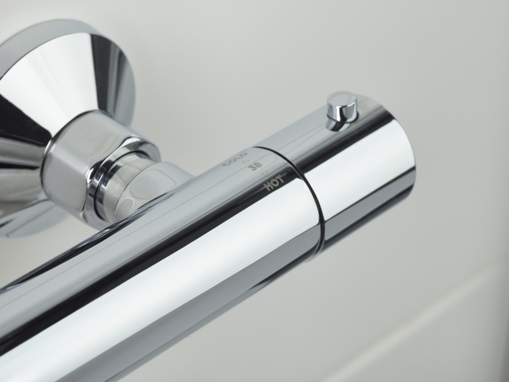 - Thermostatic cartridge with preset temperature stop at 38°C, can be over-ridden to a maximum of 46°C