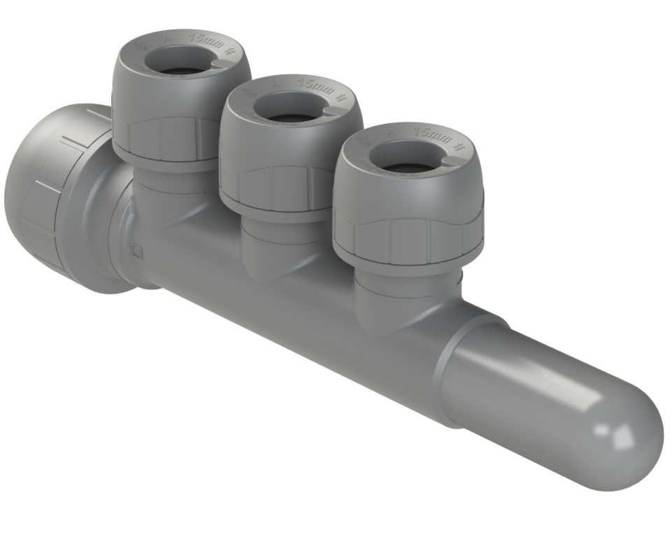 Polyplumb Manifold Single Sided – 3 Port (socket/spigot) - New Enhanced fittings include the patented In-Cert feedback technology.
