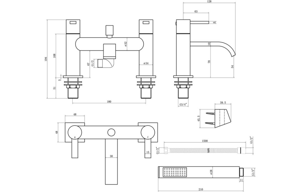 - Low Pressure Deck Mounted Silver Bath Shower Mixer